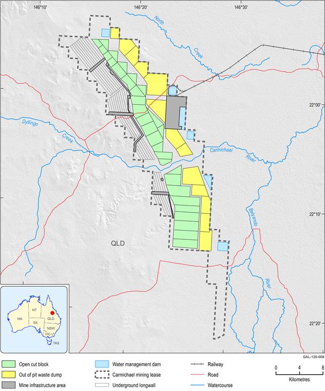 Key components of the proposed Carmichael mine and its on-site infrastructure include: