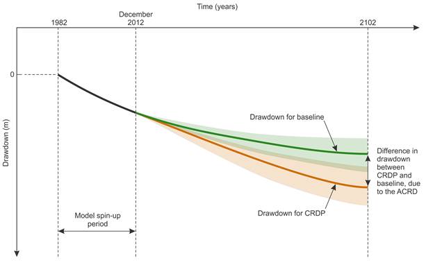 - hydrological response variables, the hydrological characteristics of the system that potentially change due to coal resource development (for example, drawdown (Figure 3) or the annual streamflow volume)