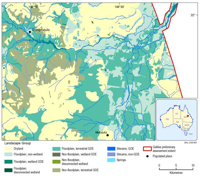 Landscapes dominated by terrestrial GDEs are shown in the vicinity of Carmichael River and the Belyando River (Figure 23) in the east of the PAE and in the vicinity of the Thomson River (Figure 24), an inland draining system south-east of Longreach. .