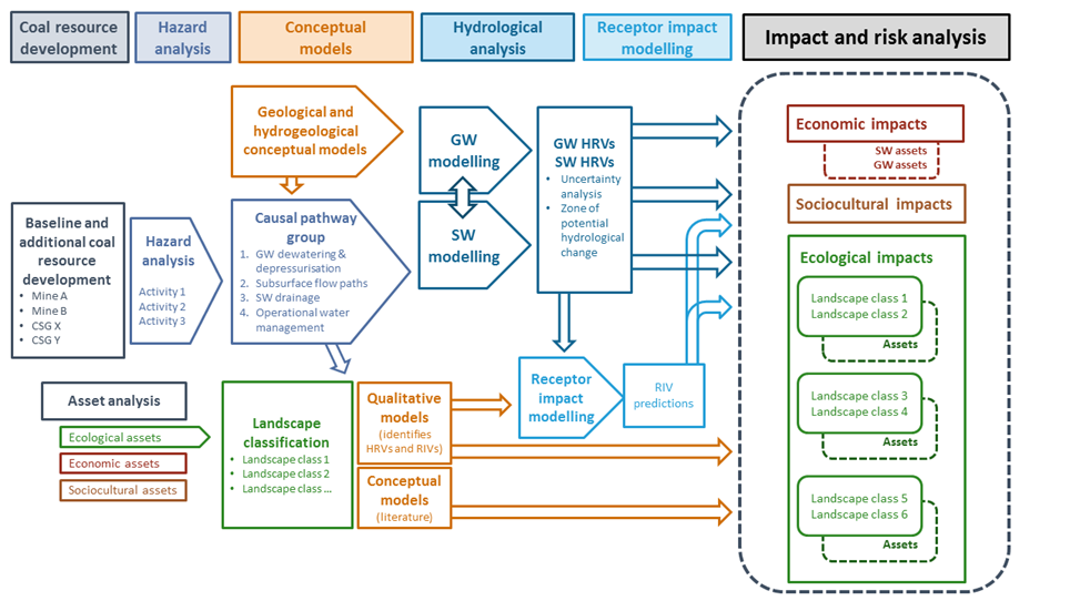 CSG = coal seam gas, GW = groundwater, HRV = hydrological response variable, RIV = receptor impact variable, SW = surface water