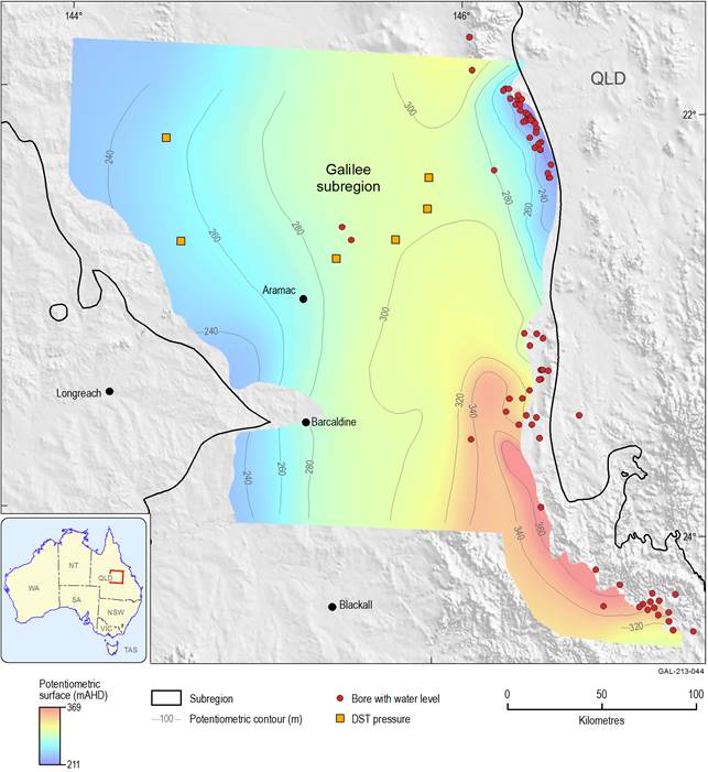 Figure 67 Potentiometric surface of BC3, Galilee subregion