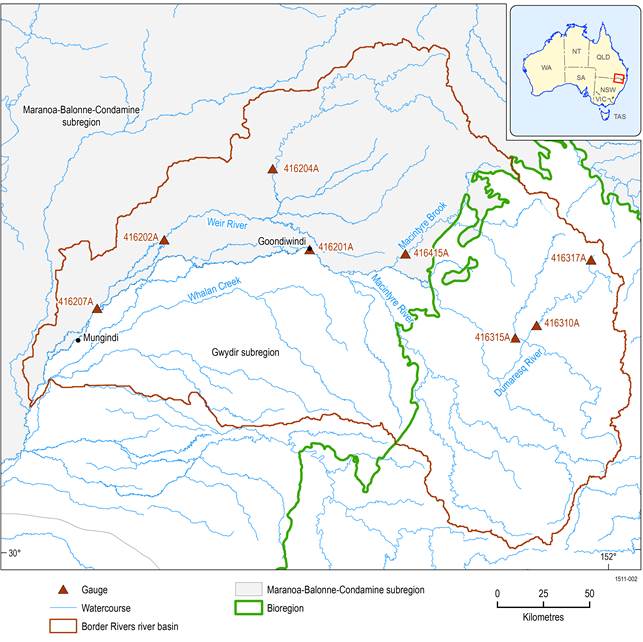 Figure 6 Tributaries of the Border Rivers river basin and streamflow stations
